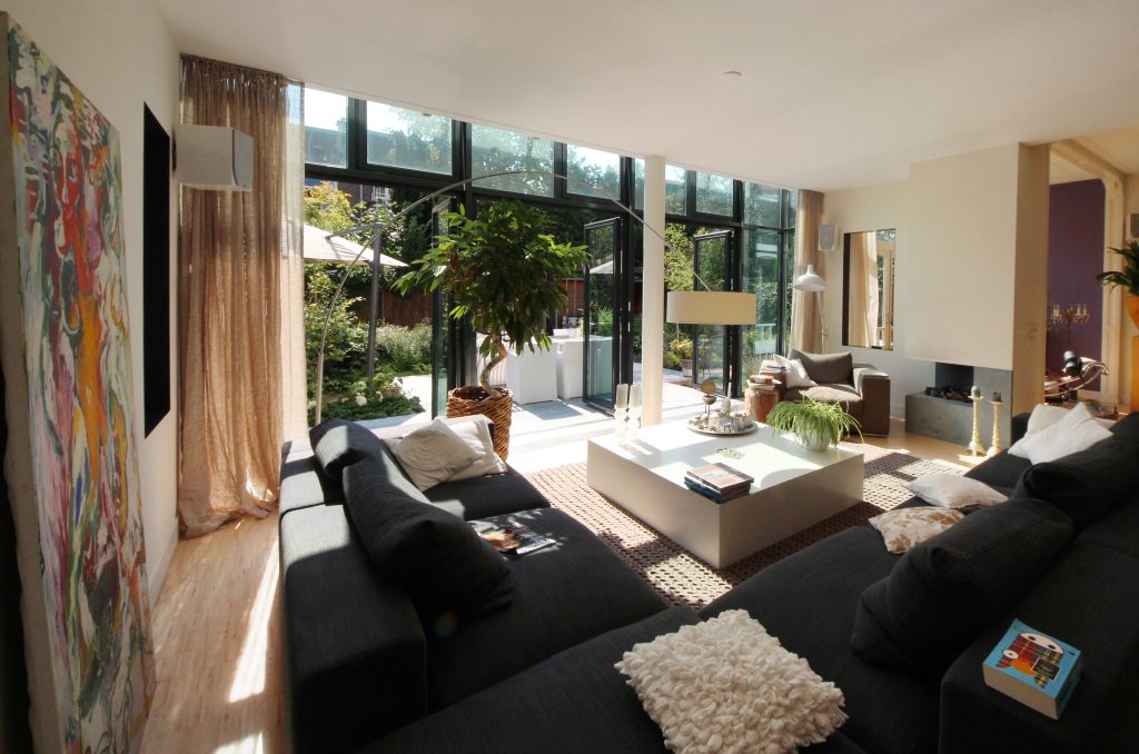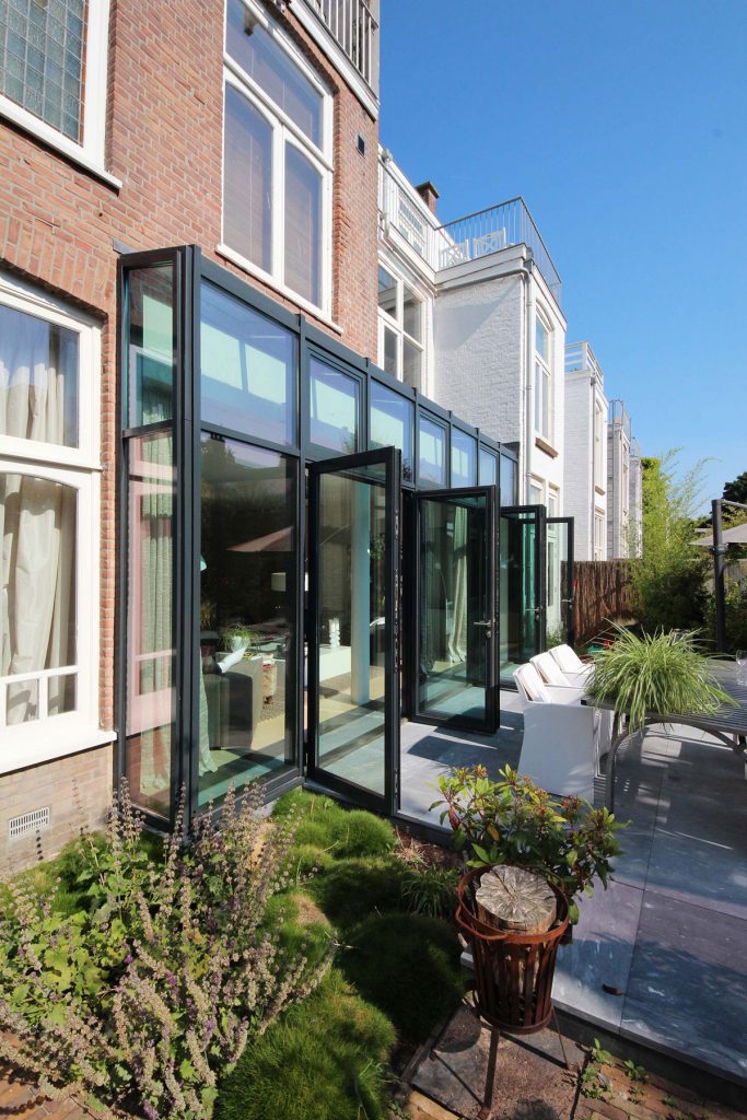 Twee karakteristieke herenhuizen in Den Haag zó verbouwen dat er een dubbelbovenhuis ontstaat én een herenhuis met villakwaliteiten: een dubbele stadstuin, een brede woonkamer aan de tuin, een woonkeuken, eetkamer, tv-kamer en speelkamer op de begane grond.