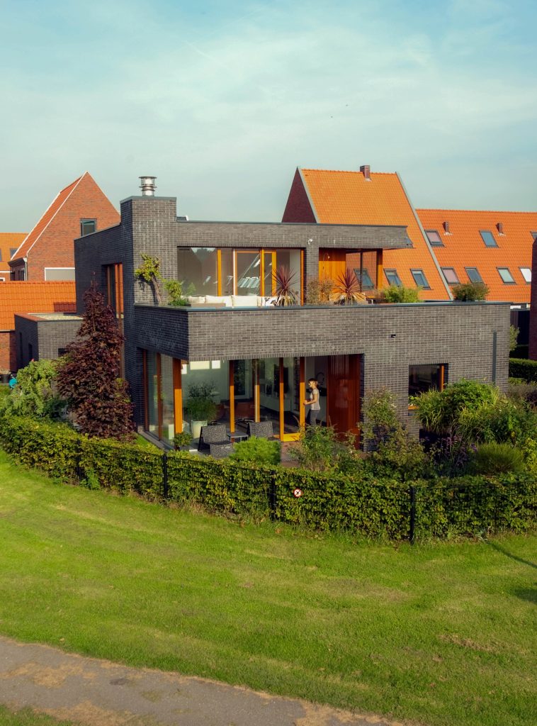 Het idee was een geheel nieuwe vrijstaande woning om oud in te kunnen worden te ontwerpen, op deze vrije kavel in Ypenburg. Alle functionele ruimtes zijn op de begane grond, zodat je niet naar boven hoeft te lopen mocht je minder goed ter been worden. Op de verdieping zijn twee logeerkamers, een tweede badkamer, groot dakterras en een lounge ruimte aan de vide. De stedenbouwkundige vraag was een woning ‘met naam’ te maken – een bijzondere noot – in de nieuwe wijk. De hoge pui aan het water, een groot dakterras gericht op zuidwesten en het uitzicht en een fijne veranda zijn ‘specials’ waardoor het beste uit de plek aan het natuurgebied de Delftse Hout is gehaald.