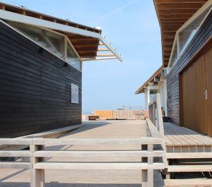Het idee voor Brandingssportvereniging Jumpteam op het strand van Schevening was een nieuwe accommodatie te bouwen die het hele jaar op het strand blijft staan. Op- en afbouwen werd verleden tijd. Het ontwerp is écht voor de sporter: om in de luwte te kunnen op- en aftuigen, om je materiaal te kunnen stallen, om samen te komen en om elkaar veilig te houden; ramen naar de zee, ook op de hoeken, geven zicht op de sporters. De reddingsboot staat paraat achter een deur aan de boulevard zodat hij snel uit kan varen. En vanaf de bar zijn alle toegangen – naar stalling, kleedkamers, strand en opgang – zichtbaar; dat maakt het gebouw beheersbaar.