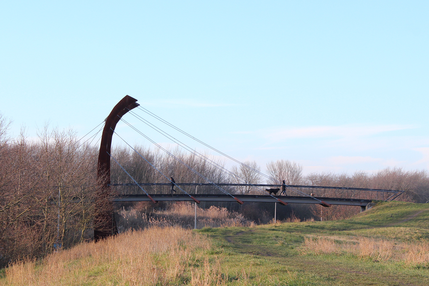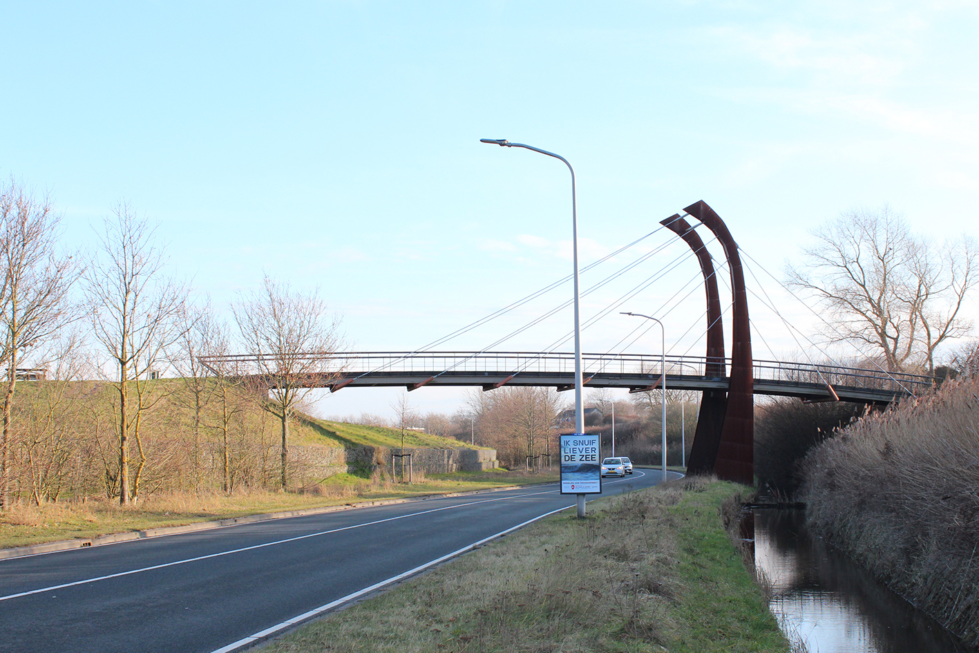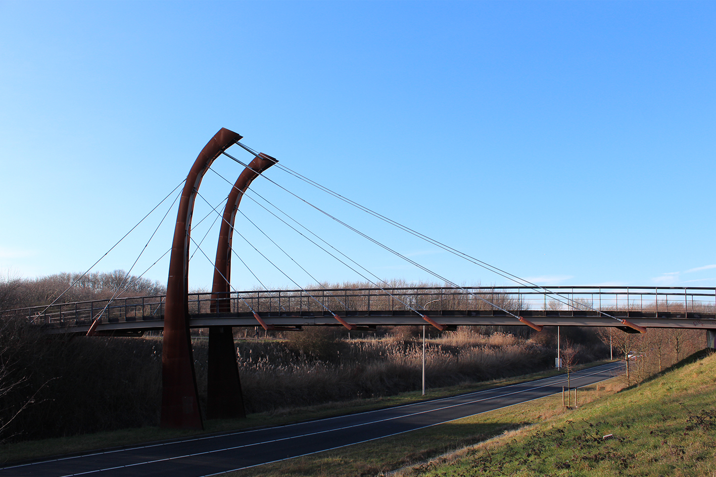 Een nieuwe brug verbindt de hoofdader van woonwijk De Zanderij met de duinen. Het idee is voetgangers en fietsers niet alleen fysiek, maar ook in beeld en beleving te verbinden met de openheid van het landschap. Daarmee markeert de brug het moment waarop stad overgaat in landschap.